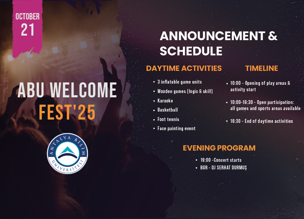 Students, a full day of fun and sports awaits on campus! Daytime activities kick off at 10:00, and we’ll cap the day with a concert at 19:30.