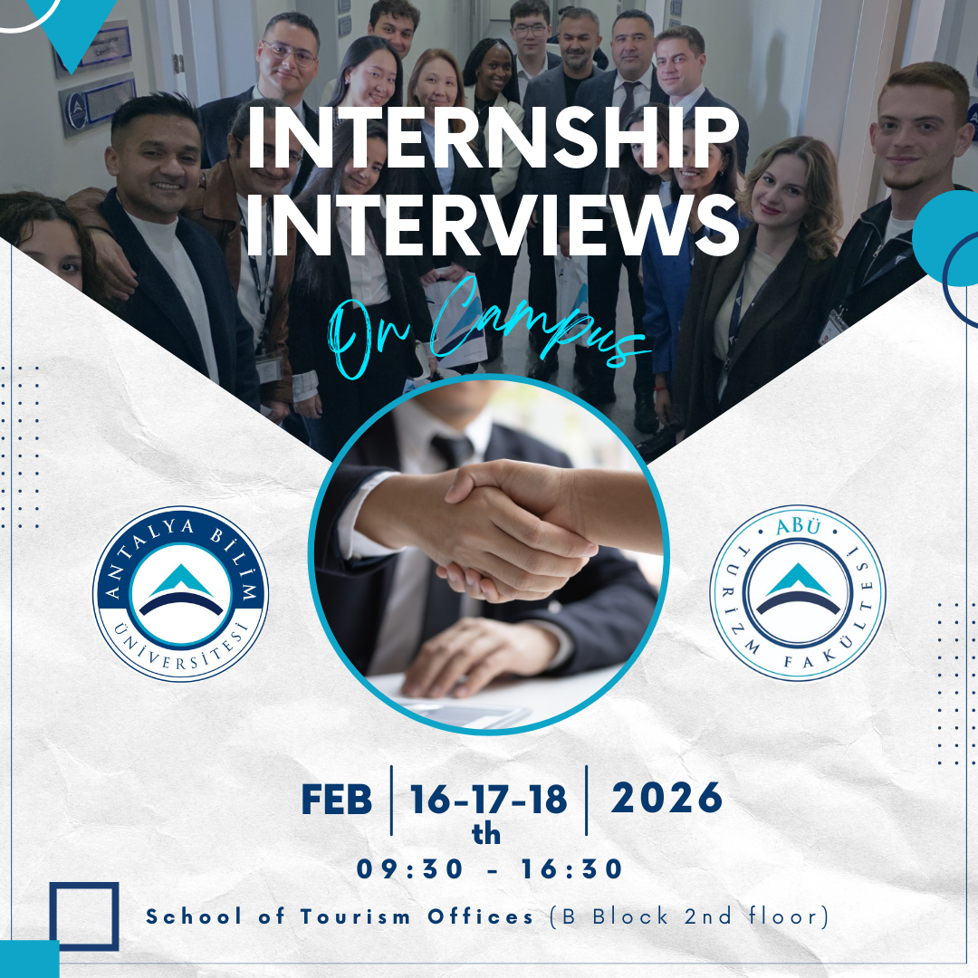 We are happy and honored to contribute to your success on this path we set out with the vision of raising tourism managers, leaders and entrepreneurs who will increase the competitive power of Antalya and our country in the tourism and hospitality sector, who can speak different foreign languages effectively, are open to innovation, think strategically, research, interpret, embrace continuous development and shape the future. Welcome to Antalya Bilim University Tourism Faculty.