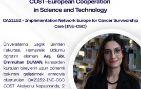 Hemşirelik Bölümü öğretim elemanı Arş. Gör. Ümmühan DUMAN kanserden kurtulan bireylerin uzun dönemli bakımını geliştirmek amacıyla oluşturulan CA21152- Integrated Network for Cancer Survivorship Care (INE-CSC) isimli COST (European Cooperation in Science and Technology) aksiyonu kapsamında, kanserden kurtulanların bakımını desteklemek için dijital çözümlerin uygulanması, kapasite geliştirme, yaygınlaştırma ve sürdürülebilirlik çalışma gruplarına dahil olmuştur.